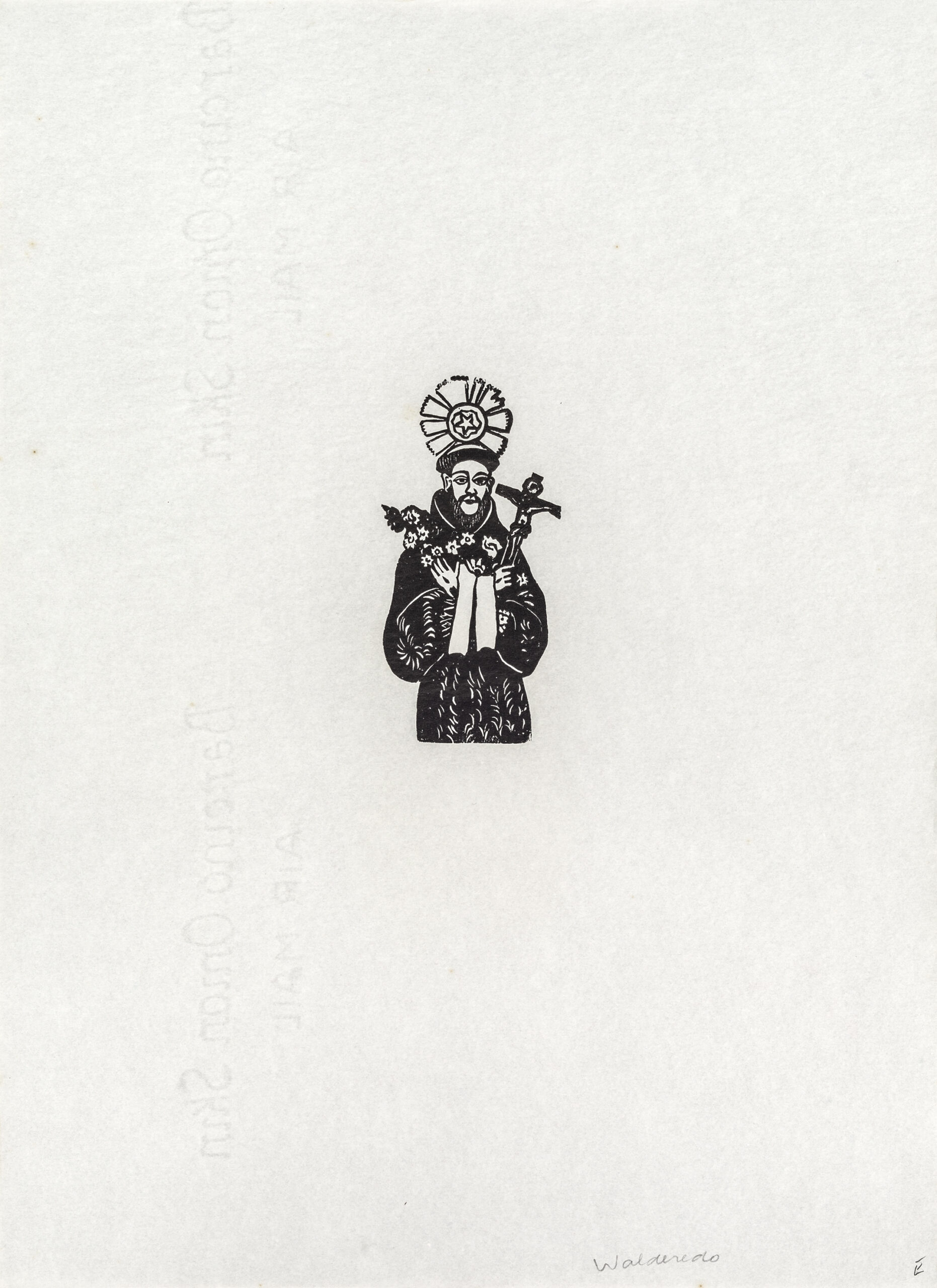 Walderedo Gonçalves de Oliveira nasceu em Crato, Ceará, região conhecida por Cariri cearense, em 19 de abril de 1920. Ele pode ser considerado um dos maiores xilógrafos da primeira metade do século XX com peças expostas em vários museus pelo mundo. Filho de um pai carpinteiro e uma mãe artesã, teve uma infância difícil, trabalhou desde cedo pra ajudar à família. Não terminou os estudos, pois foi expulso por ter desenhado uma mulher nua, mas o jovem não deixou de estudar, começou a ler por conta própria livros de história, geografia, atlas, romances de autores como José de Alencar, M. Delly, Humberto de Campos e também folhetos de cordel. Fez sua primeira xilogravura aos 15 anos de idade, quando trabalhava como tipógrafo na livraria e tipografia de Pergentino Maia. A partir daí o jovem artista passou a fazer xilogravuras sobe encomenda para a Tipografia de José Bernardo da Silva. Sua fama foi crescendo e ele passou a ter encomendas de várias outras gráficas da região como a de Manoel Caboclo, Mascote, Gilberto Sobreira (irmão de Geová Sobreira) e a Diocese do Crato. As xilogravuras de Walderedo não se limitaram apenas a capas de folhetos, ele produziu xilogravuras para rótulos de vários produtos como bebidas, cigarros, sabão e capas de livros. Ele fez também xilogravuras em formatos maiores para serem expostas em museus pelo mundo. Sua projeção nacional e internacional aconteceu na década de 1960 quando foi feita sua primeira exposição na Faculdade de Filosofia do Crato. Outra iniciativa que o projetou foi a do Museu de Arte da Universidade do Ceará (MAUC) que enviou os emissários Sérvulo Esmeraldo e Lívio Xavier ao Cariri para comprar tacos e encomendar xilogravuras para compor o acervo da instituição, entre essas encomendas estava o álbum “Apocalipse” de Walderedo. Além do Apocalipse o acervo do MAUC conta com diversas outras gravuras do xilógrafo. Além de xilógrafo, Walderedo trabalhou como profissional de jogo do bicho, tipógrafo, torneiro-mecânico, pintor, eletricista, carpinteiro e até abriu cofres. Ele casou com D. Ione Gonçalves em 1943 e desse casamento tiveram 10 filhos. Em 2004, recebeu o diploma de Mestre da Cultura Tradicional Popular dado pelo Governo do Estado, numa ação inédita de preservação e proteção do patrimônio imaterial cearense. Walderedo faleceu em 2005, aos 85 anos de idade, na cidade do Crato vítima de uma parada cardíaca.